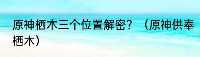 原神栖木三个位置解密?(原神供奉栖木)
