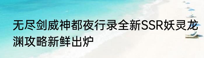 说起无尽剑威神都夜行录全新SSR妖灵龙渊攻略新鲜出炉,会有不少人想要了解,那么下面来看看无尽剑威神都夜行录全新SSR妖灵龙渊攻略新鲜出炉的有关内容。