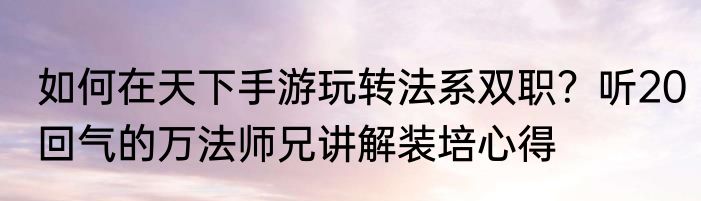 说起如何在天下手游玩转法系双职?听20回气的万法师兄讲解装培心得,会有不少人想要了解,那么下面来看看如何在天下手游玩转法系双职?听20回气的万法师兄讲解装培心得的有关内容。