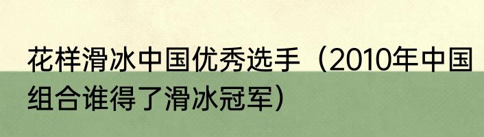 花样滑冰中国优秀选手(2010年中国组合谁得了滑冰冠军)