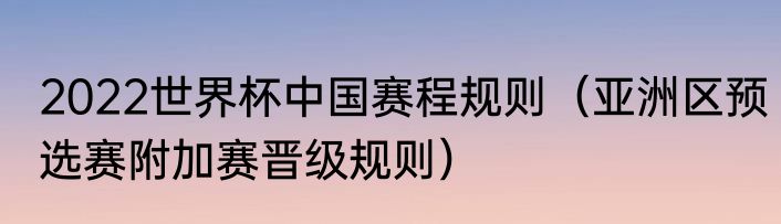 2022世界杯中国赛程规则(亚洲区预选赛附加赛晋级规则)