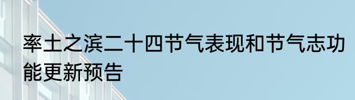 率土之滨二十四节气表现和节气志功能更新预告
