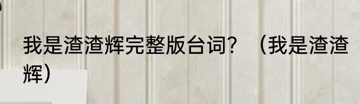 我是渣渣辉完整版台词?(我是渣渣辉)