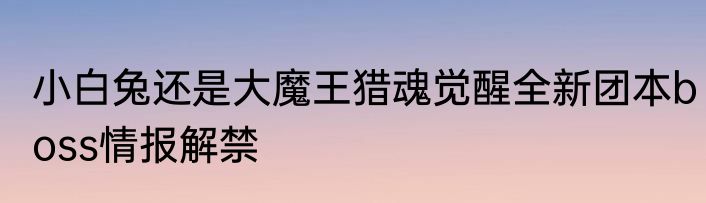 说起小白兔还是大魔王猎魂觉醒全新团本boss情报解禁,会有不少人想要了解,那么下面来看看小白兔还是大魔王猎魂觉醒全新团本boss情报解禁的有关内容。