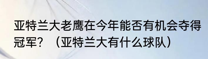 提及亚特兰大老鹰在今年能否有机会夺得冠军?(亚特兰大有什么球队)的相关内容,许多人不太了解,来看看小文的介绍吧!
