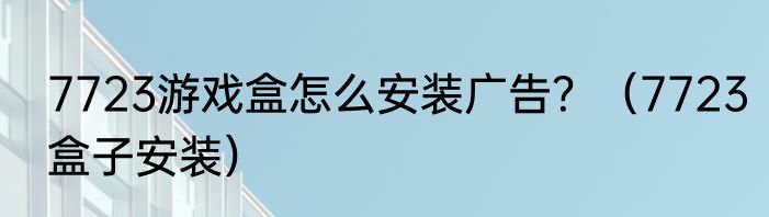 7723游戏盒怎么安装广告?(7723盒子安装)