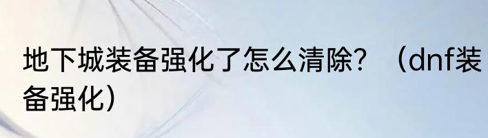 地下城装备强化了怎么清除?(dnf装备强化)