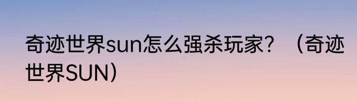 奇迹世界sun怎么强杀玩家?(奇迹世界SUN)