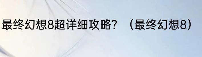 最终幻想8超详细攻略?(最终幻想8)