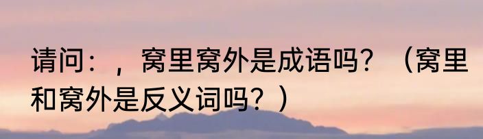 提及请问:,窝里窝外是成语吗?(窝里和窝外是反义词吗?)的相关内容,许多人不太了解,来看看小洁的介绍吧!