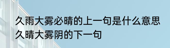 久雨大雾必晴的上一句是什么意思?