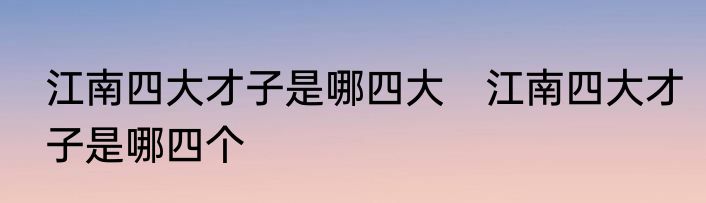 江南四大才子是哪四大 江南四大才子是哪四个