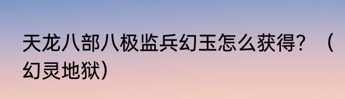 天龙八部八极监兵幻玉怎么获得?(幻灵地狱)