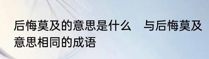 后悔莫及的意思是什么 与后悔莫及意思相同的成语