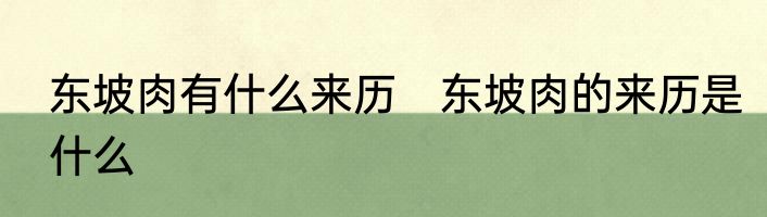 东坡肉有什么来历?