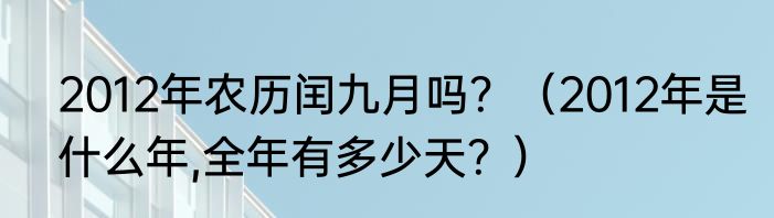2012年农历闰九月吗?(2012年是什么年,全年有多少天?)