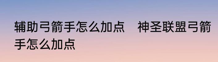 辅助弓箭手怎么加点 神圣联盟弓箭手怎么加点