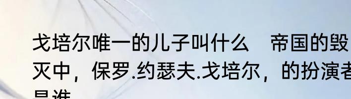 戈培尔唯一的儿子叫什么 帝国的毁灭中,保罗.约瑟夫.戈培尔,的扮演者是谁