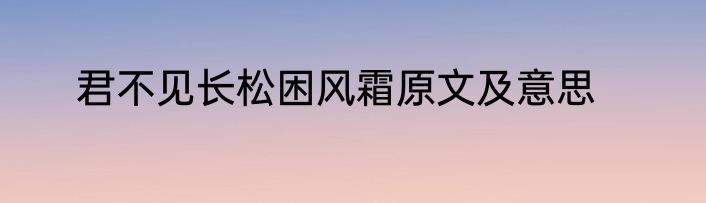 君不见长松困风霜原文及意思?
