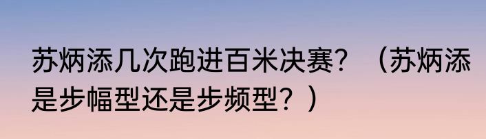 提及苏炳添几次跑进百米决赛?(苏炳添是步幅型还是步频型?)的相关内容,许多人不太了解,来看看小智的介绍吧!