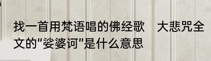 找一首用梵语唱的佛经歌 大悲咒全文的“娑婆诃”是什么意思