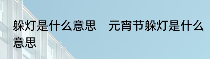 躲灯是北方的一种民间习俗,就是说新娶的媳妇元宵节时不能看到婆家的灯火,所以新结婚的新娘子元宵节回娘家去过,元宵节后再从娘家回来,