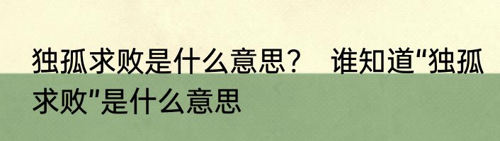 独孤求败是什么意思?